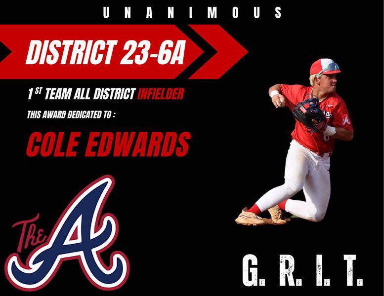 Cole Edwards ('26) receives UNANIMOUS District 23-6A 1st Team All-District Infielder Honors