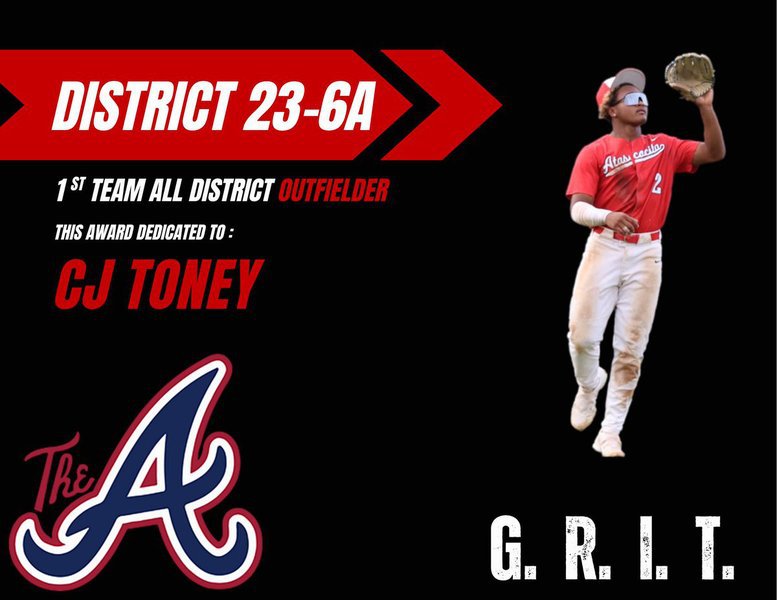 CJ Toney ('26) receives District 23-6A 1st Team All District Outfielder Honors