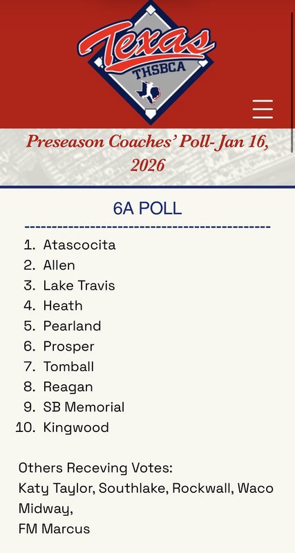 Atascocita #1 in THBCA 2026 Preseason Poll
