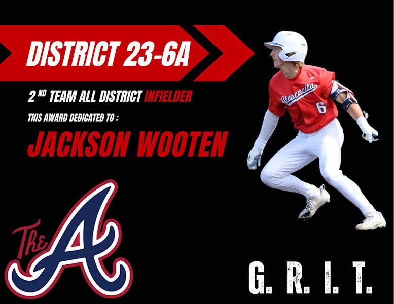 Jackson Wooten ('27) receives District 23-6A 2nd Team All District Infielder Honors